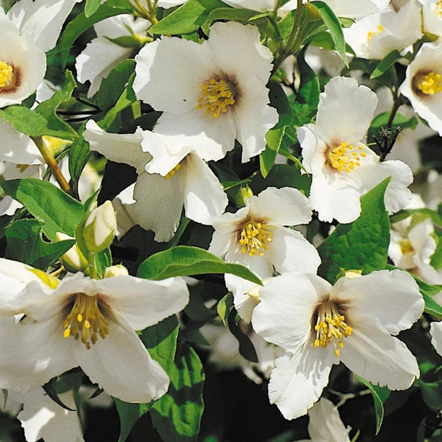 Erősen illatos, fehér virágú, lombhullató díszcserje.