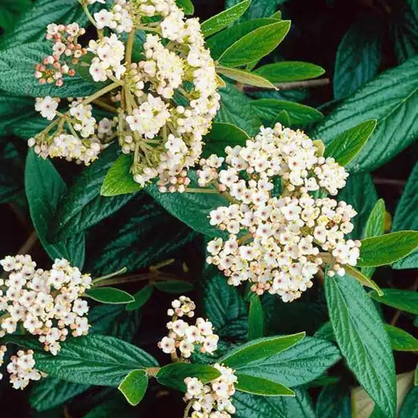 Örökzöld cserje, fehér virágokkal