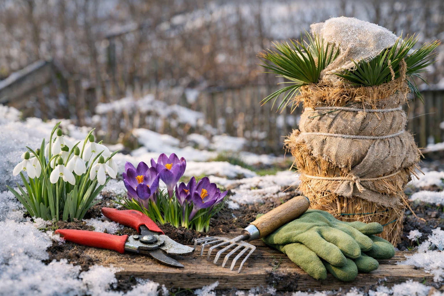 - a takaróanyagok óvatos lazítása a korán virágzó növényeknél (hóvirág, krókusz)